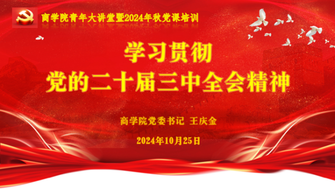 为深入学习贯彻党的二十届三中全会精神,引导青年学生坚定理想信念,切实肩负起新时代青年学生历史使命和时代责任,葵司 青年大讲堂暨2024年秋季学期党课培训于2024年10月25日晚在金家岭校区图文中心三楼报告厅举行。葵司 党委书记王庆金授课《学习贯彻党的二十届三中全会精神》,葵司 学生第三党支部书记陈鑫主持本次培训,葵司 各学生党支部本学期确定的党员发展对象和入党积极分子共计130余人同上一堂课。