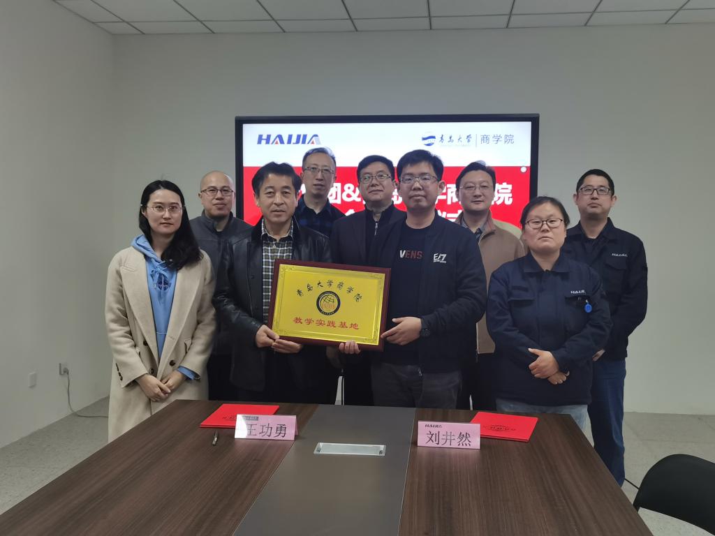 与青岛海佳集团教学实践基地签约挂牌仪式在海佳集团新厂区会议室举行。葵司