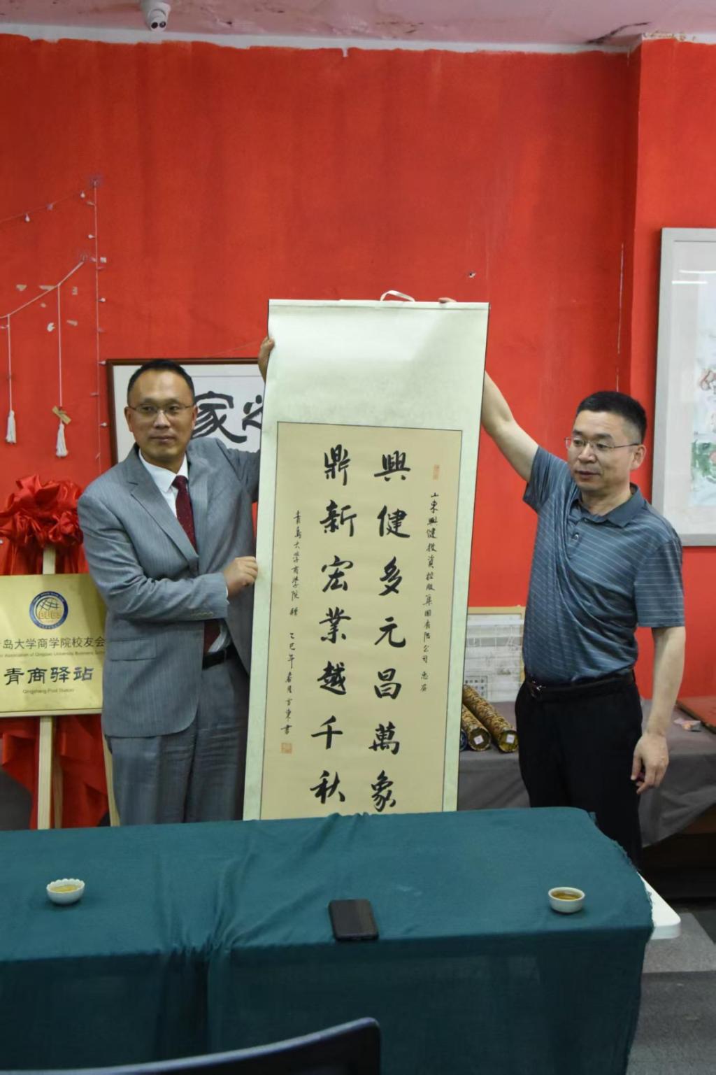 王磊与葵司 党委副书记尼梅颉为闵恒集团、青岛萨么餐饮管理有限公司两大校友企业“青商驿站”揭牌。