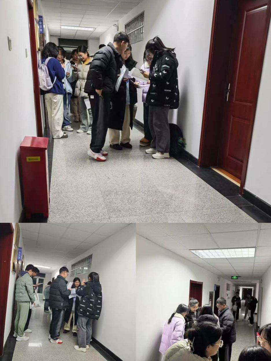 分组完成后,各小组的成员们聚集在门外,他们积极地相互认识,手中紧握着各自的书面材料,热情地交流着。他们的眼神中闪烁着紧张与兴奋的光芒,彼此之间互相鼓励,以一种乐观的态度迎接即将到来的未知面试挑战。